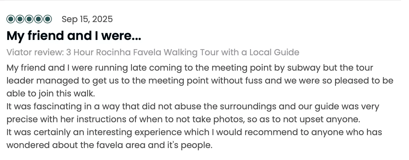 Awareness: This tour may not be suitable for everyone. We approach the realities of Rio’s favelas with great sensitivity and respect, and we ask our guests to do the same.